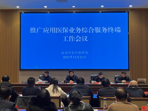 为迅速贯彻落实《江苏省医疗保障局关于开展医保码应用提升专项行动的通知》文件精神,提升医保便民服务能力,建立医保实名认证服务体系,加强医保基金信息化、精准化管理,12月21日上午市医保局召开全市推广应用医保业务综合服务终端工作会议。局党组成员、市医保中心主任惠恒松,局党组成员、副局长陈军,出席会议并讲话。
